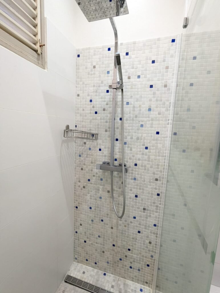 Située à l’étage sous un beau plafond rampant, cette vaste suite climatisée dispose de :